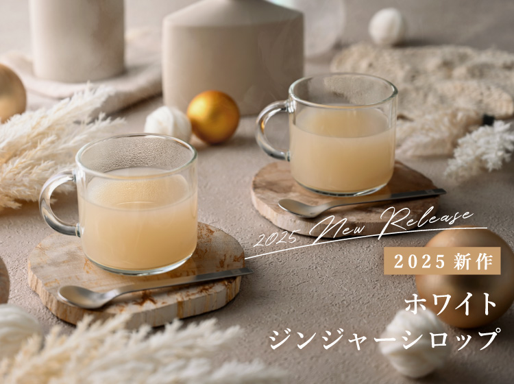 国産生姜と数種のスパイス。オリジナルレシピで“美味しい”を追求した自慢のジンジャーシロップ。定番から季節限定の味わいまでご用意しました。