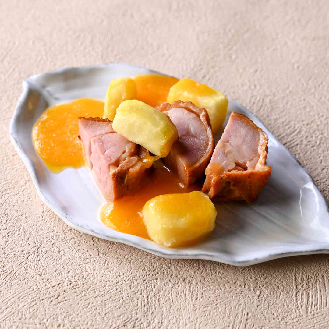鶏もものスモーク、チェダーチーズ、ポテトのトリロジー