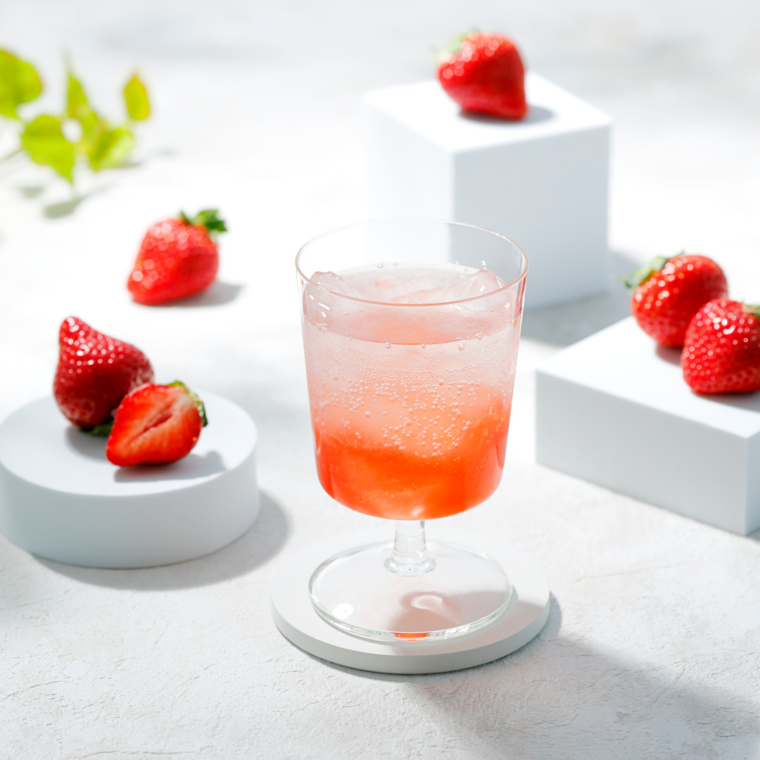 生姜との相性も良く、苺の甘酸っぱさと生姜の爽やかな辛みが調和したバランスの良い味わいです。炭酸の他には、アイスミルク割りで苺ミルク風もおすすめです。