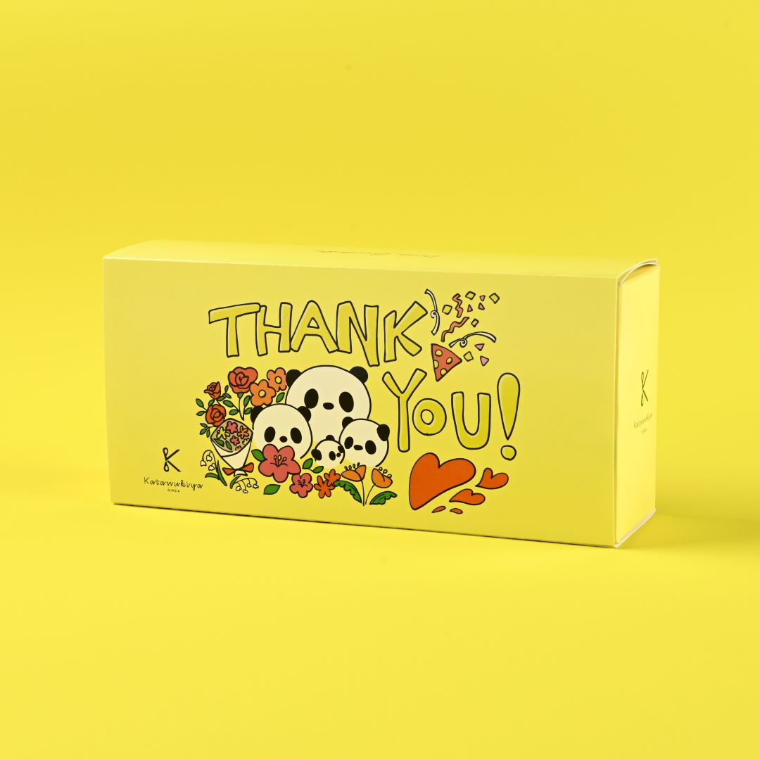 「いつもありがとう」「お疲れさま」。そんな気持ちを、もっと素直に、そして楽しく伝えたいときにぴったりな3個セット。大きな“THANK YOU!”とお花のイラストが彩るデザインのパッケージでお届けします。