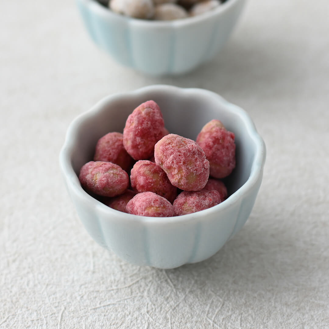 国産の有機大豆を炒り豆にし、”梅”の味わいに仕上げました。酸味は控えめで、ほんのり香る梅の上品な香りが有機大豆の香ばしさを引き立てます。