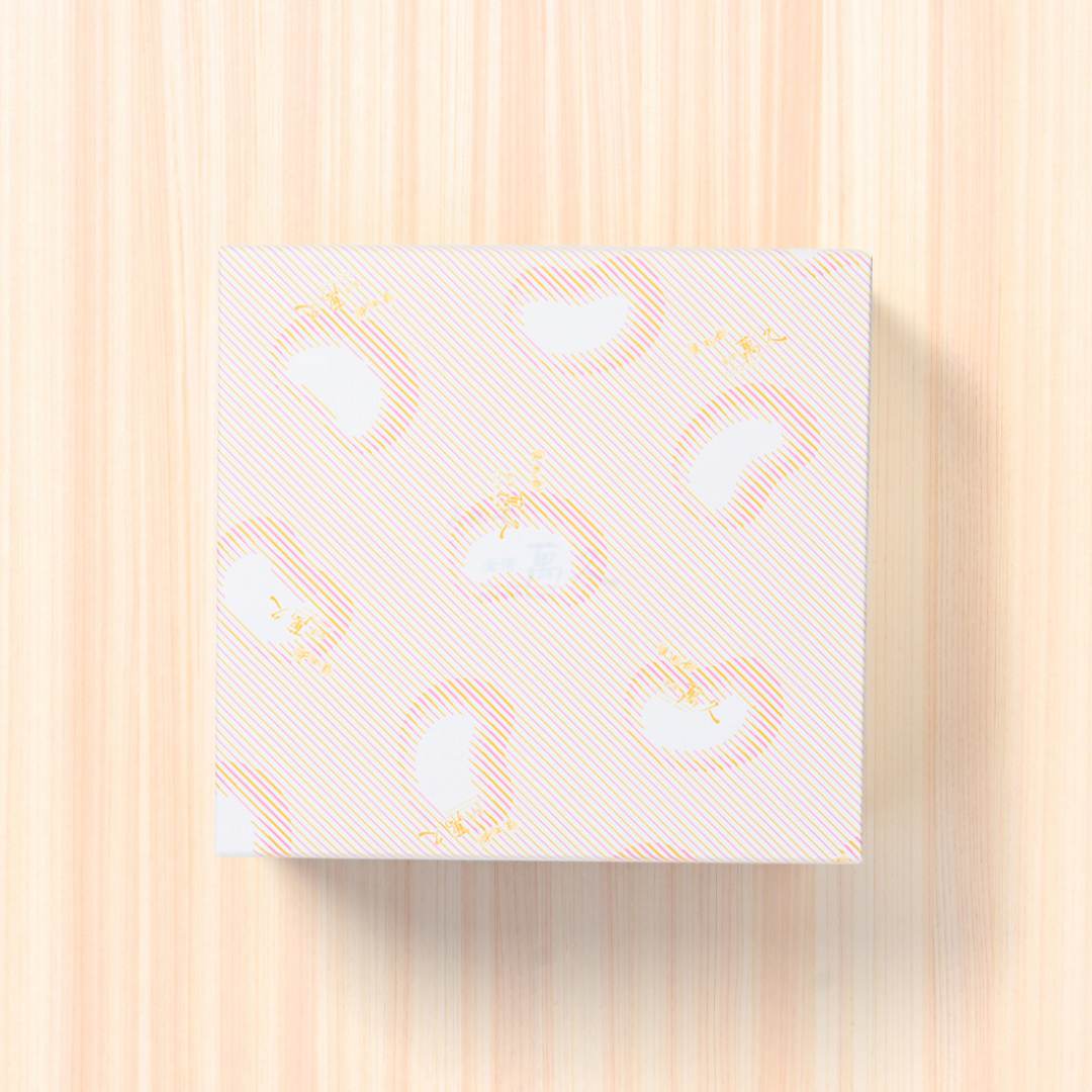 おめでたい色合いの炒り豆や、しょこら染みこむ黒豆おかき、金箔輝くかすてらをセットにしました。九谷焼の技術を使った手描きの豆箱は、おめでたい『鯛(蝶結び)』と可愛らしい『うさぎ』の絵柄でお届けします。お祝いのお返しや、慶事があった際の"幸せのおすそ分け"にいかがでしょうか。