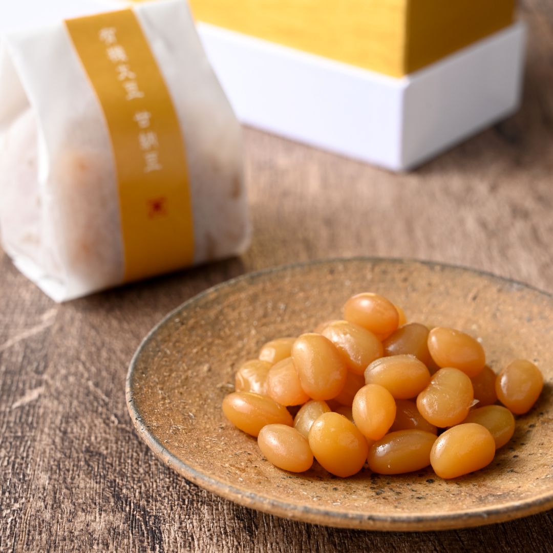 貴重な国産有機大豆を甘納豆にしました。豆本来の奥深い味わいに、大地のめぐみを感じます。やさしい甘さに、気が付けばもう一粒、また一粒と手が止まらなくなります。