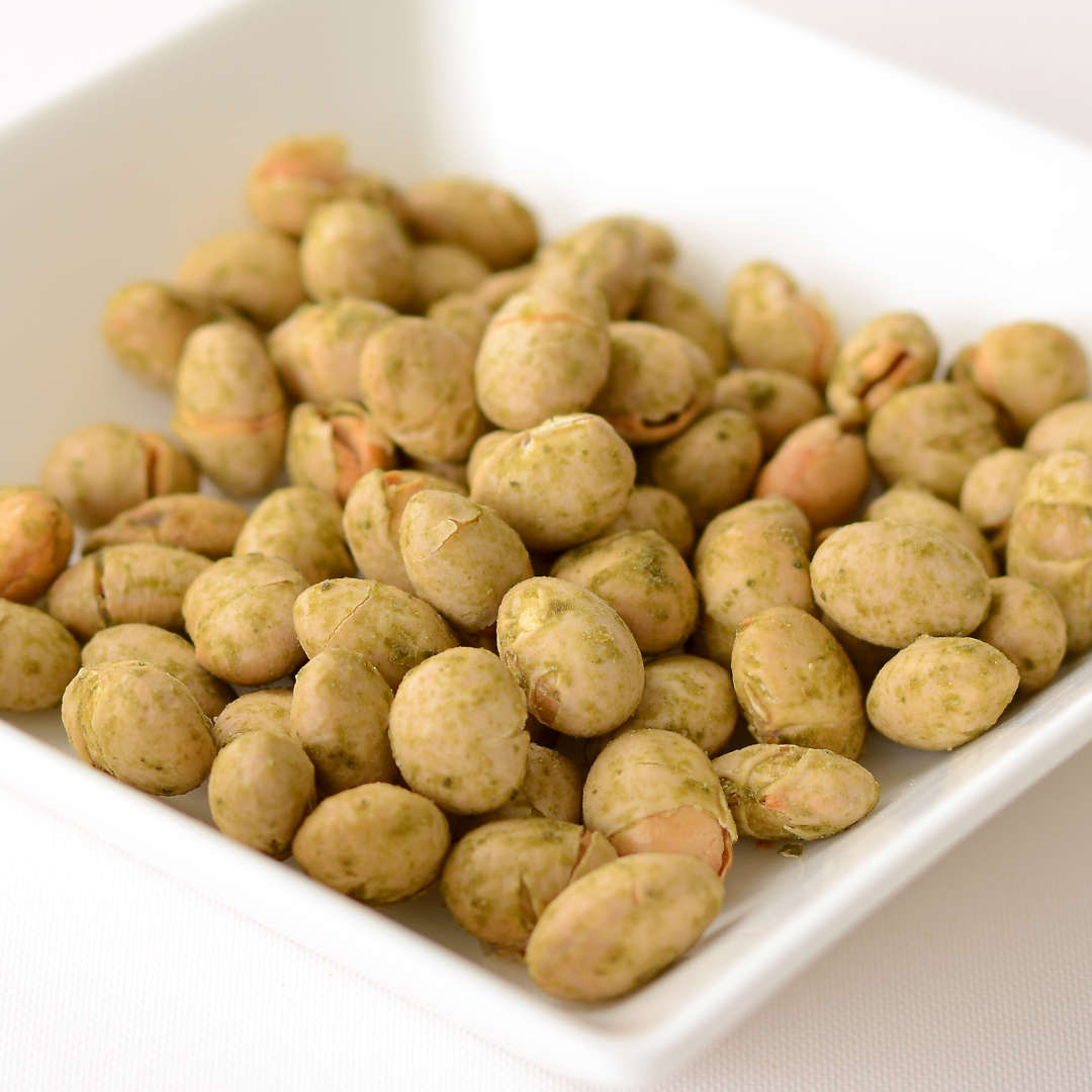 国産の有機大豆を炒り豆にし、袋を開けた瞬間に磯の香りがふわっと香る、青さのりと醤油で味付けしました。風情ある磯の香りに、醤油を少し。食べだしたら止まらないお味です。