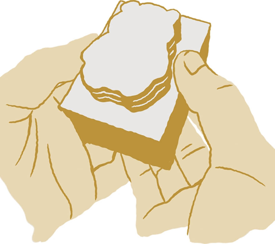 ていねいに、ていねいに 幾重にも焼き重ねられた 平焼きバウムクーヘン。 切れ目を入れて 絵をえがいて ー それがわたしたちカタヌキヤのしごと。 さいごの型ぬきを お客さまの“おたのしみ”にしたら 他にはない、体験のある とっておきの 型ぬきバウムのできあがり。