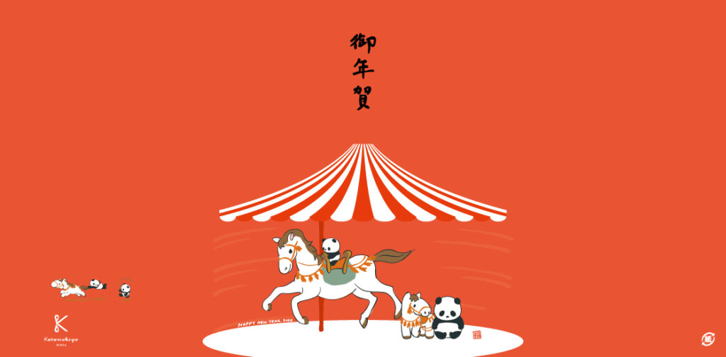 「冬のパンダギフトセット【6個入】、【幸】、【福】」に限り、季節や行事に合わせた絵柄の掛け紙をご用意しております。掛け紙ものし同様、包装紙の上にお掛けしてお届けいたします。